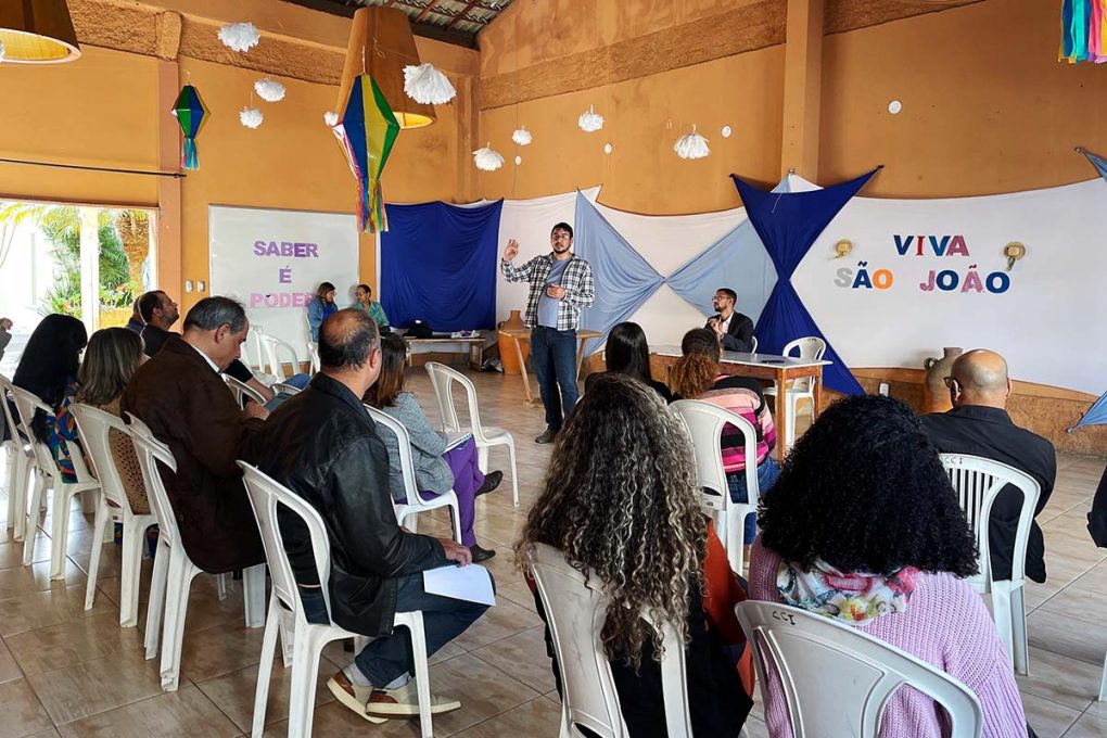 A audiência foi conduzida pelos técnicos financeiros da Prefeitura, Edinael Pardin e Felipe Santos, e contou também com a participação de gestores e representantes de conselhos municipais. “Essa aqui é a etapa aberta para a discussão, para ouvir a população. É a que finaliza o processo, para ouvir as propostas de meta, como a gente fez aqui, e a partir dela a gente vai encaminhando o projeto e fazendo as adequações antes do envio para a Câmara”, declarou Felipe.