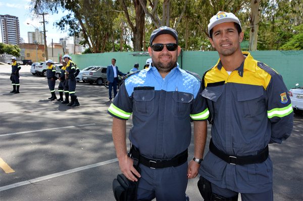 O agente de transporte Renan Bittencourt e o agente de trânsito Gênesis Carlos: “Adquirimos novos conhecimentos e aperfeiçoamos o que possuíamos”.