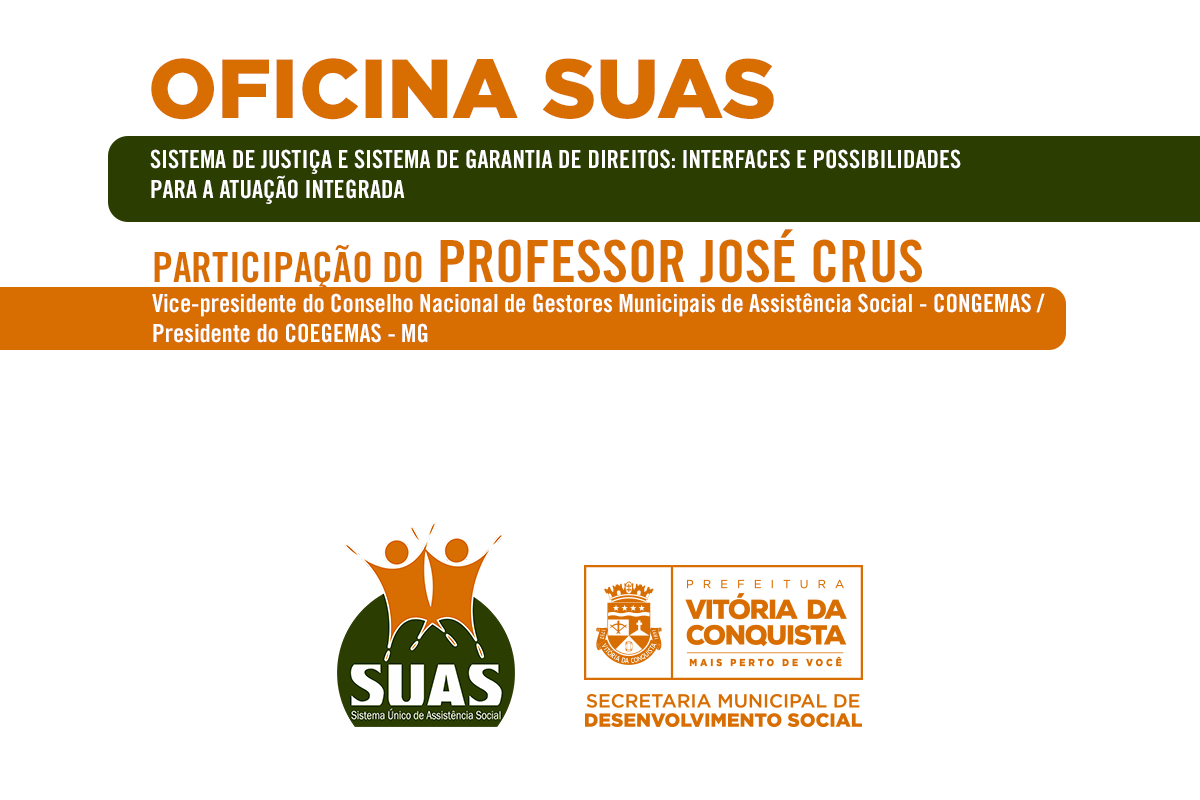 Nos últimos dois anos, a Prefeitura Municipal e a Secretaria de Desenvolvimento Social de Vitória da Conquista estão empenhadas na qualificação dos serviços socioassistenciais ofertados à população. Na próxima sexta-feira (6), acontece mais um desses momentos de formação e difusão do conhecimento com a oficina: “Suas, Sistema de Justiça e Sistema de Garantia de Direitos: Interfaces e possibilidades para a atuação integrada”, com a participação do professor José Crus.