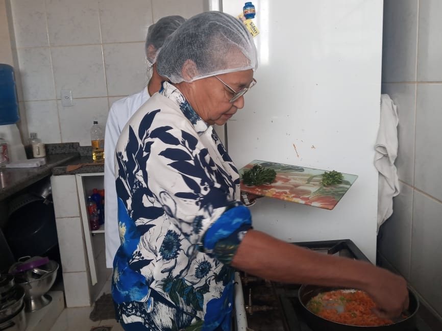 A agricultora do Vila América, Maria Aparecida, ajudou na preparação da torta. Para ela, foi uma experiência muito enriquecedora. “Em casa, eu gosto de cozinhar, mas a experiência foi ainda melhor sendo acompanhada pelas meninas que são profissionais. Já conhecia a planta e usava em salada, mas não sabia que a gente podia usar de várias maneiras. Foi um prazer muito grande participar desse curso aqui”, relatou.