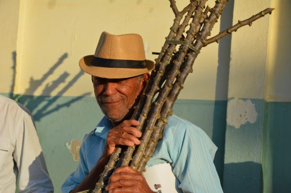 Morador da região com a maniva (caule da mandioca)