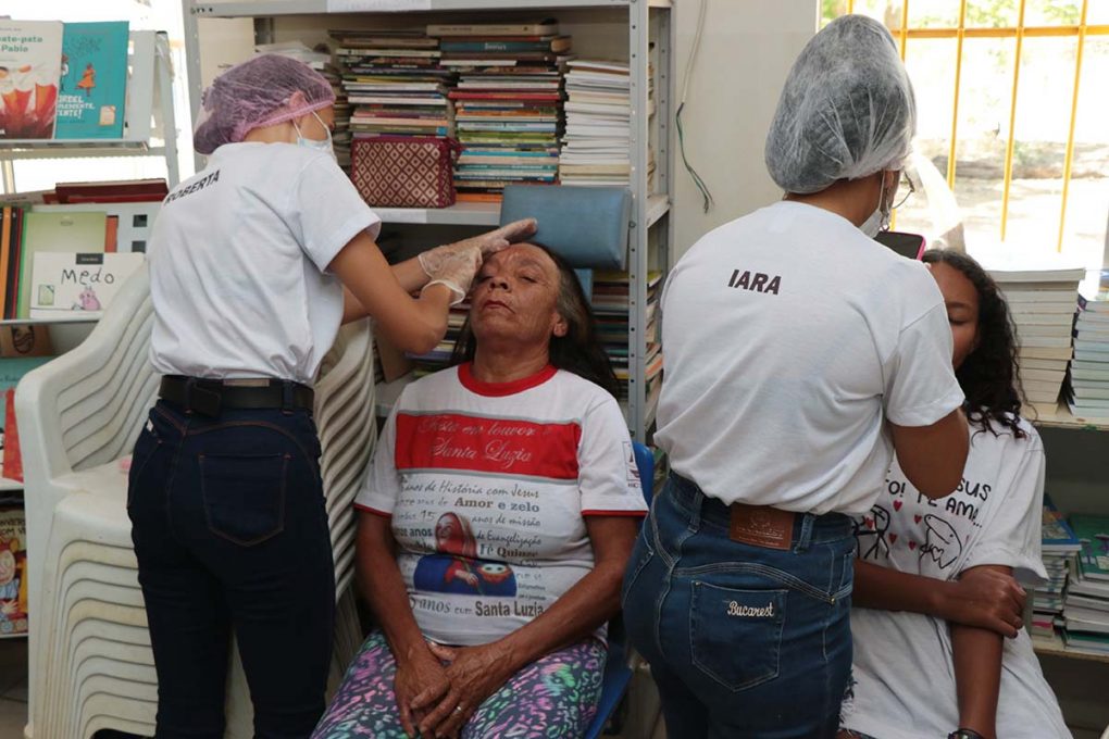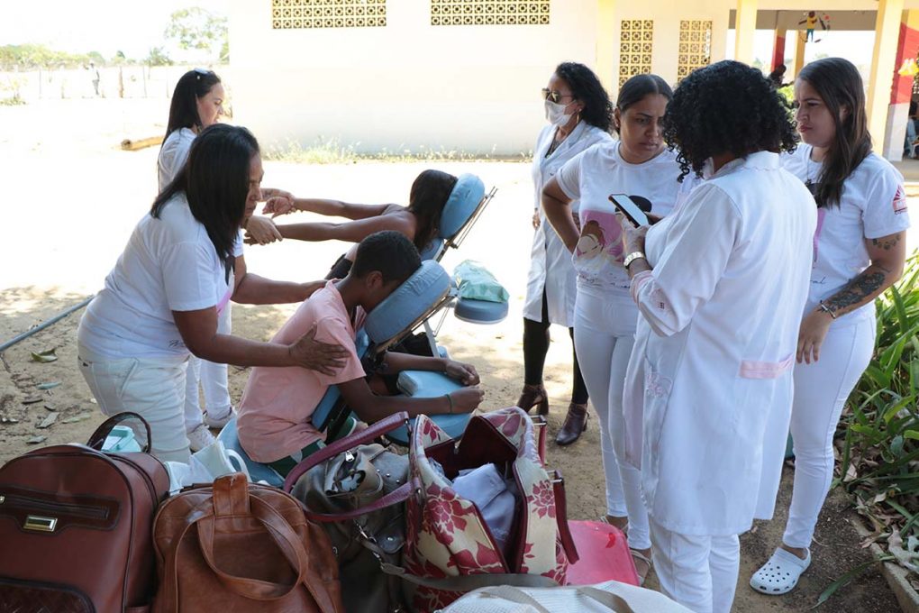 A família da estudante Marinalva Pereira Silva, 38 anos, foi uma das que se beneficiaram com as ações oferecidas pelo projeto Saúde em Todo Lugar. Além de se consultar com médico clínico e dermatologista, Marinalva se submeteu a uma sessão de massagem e fez uma visita à designer de sobrancelhas. O marido, Marconi Borges, 40, agricultor e vigilante na unidade de ensino local, também fez consulta dermatológica e o exame de PSA. Os filhos, Raví, 12 anos, e Kyara, 5, ganharam lanches e brinquedos.