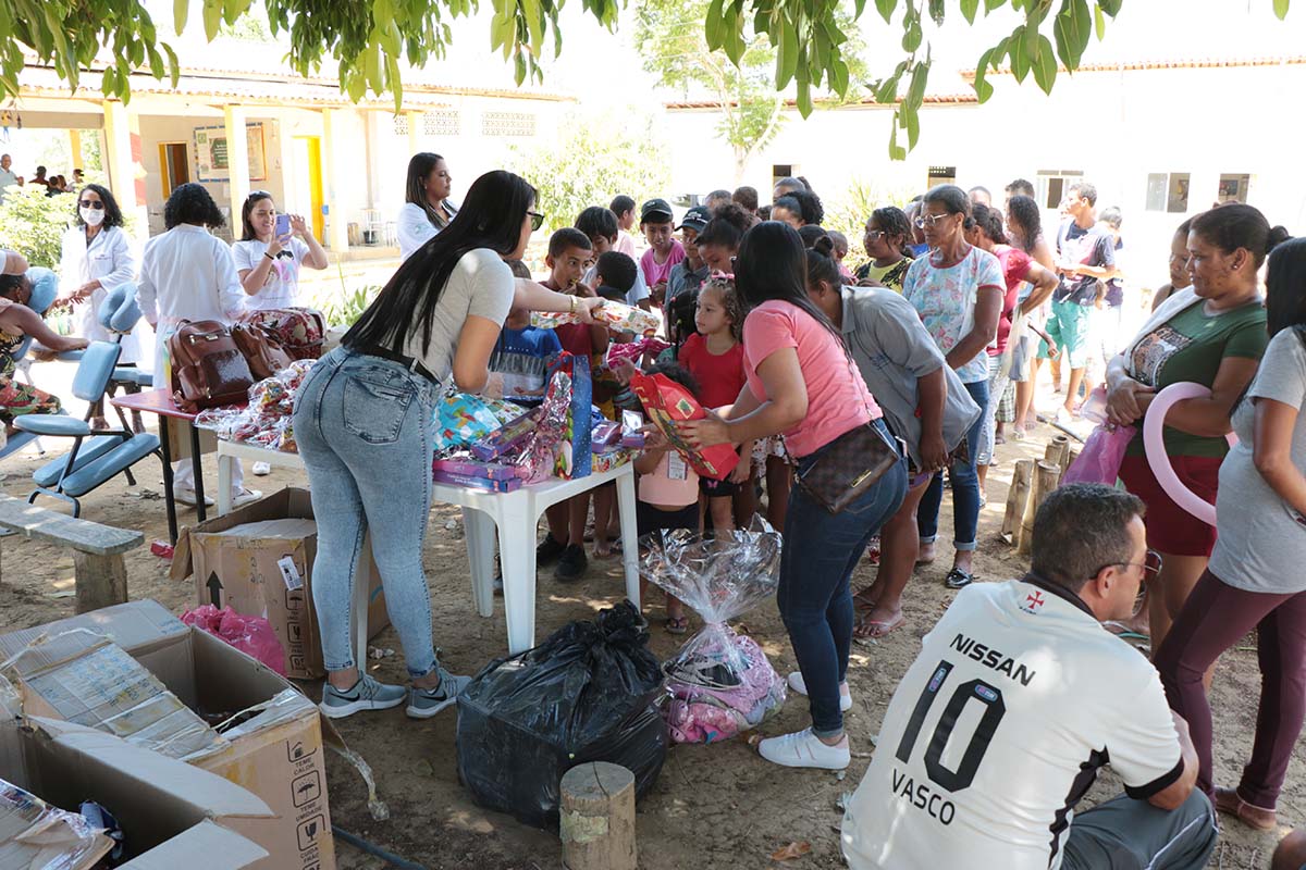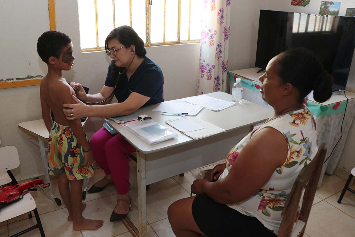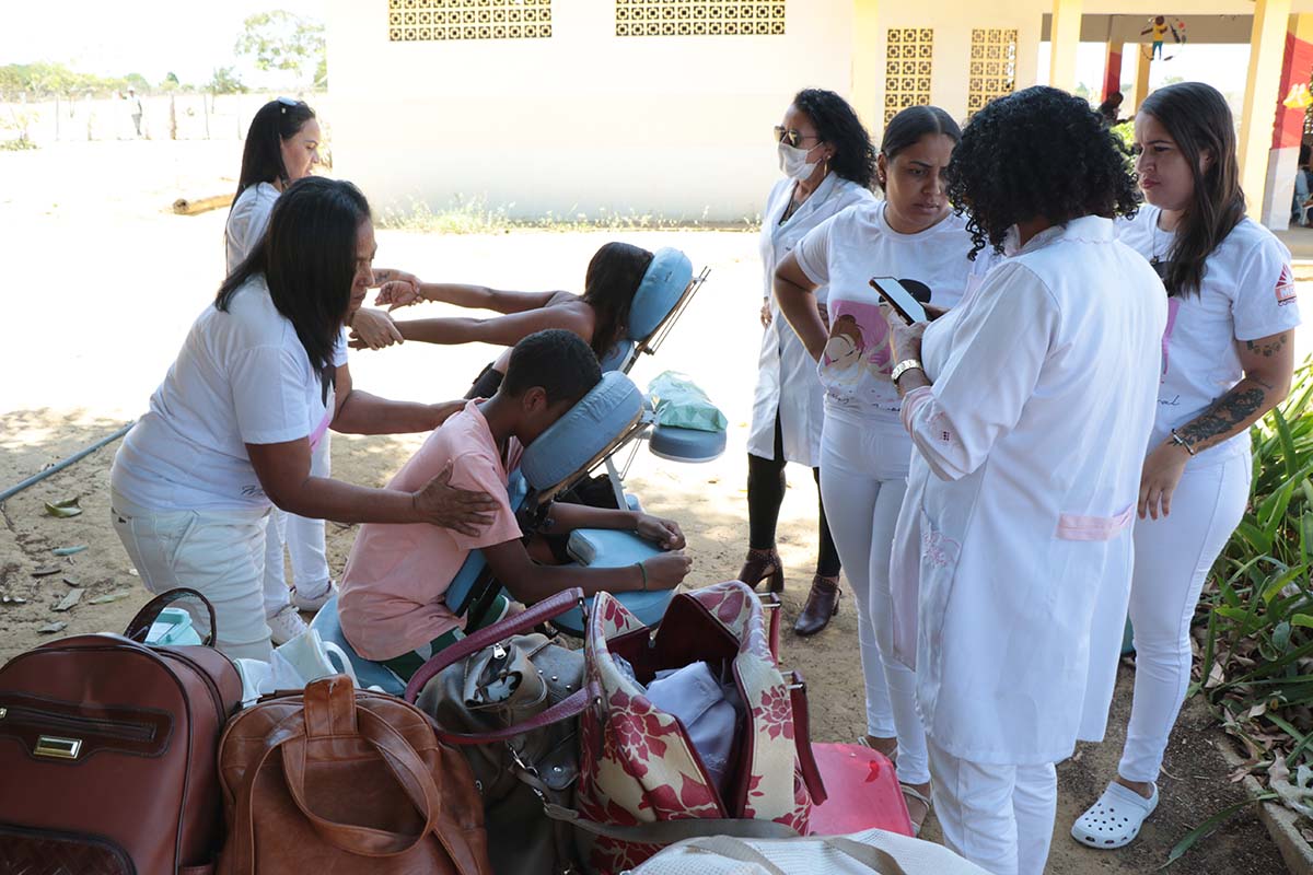 A família da estudante Marinalva Pereira Silva, 38 anos, foi uma das que se beneficiaram com as ações oferecidas pelo projeto Saúde em Todo Lugar. Além de se consultar com médico clínico e dermatologista, Marinalva se submeteu a uma sessão de massagem e fez uma visita à designer de sobrancelhas. O marido, Marconi Borges, 40, agricultor e vigilante na unidade de ensino local, também fez consulta dermatológica e o exame de PSA. Os filhos, Raví, 12 anos, e Kyara, 5, ganharam lanches e brinquedos.