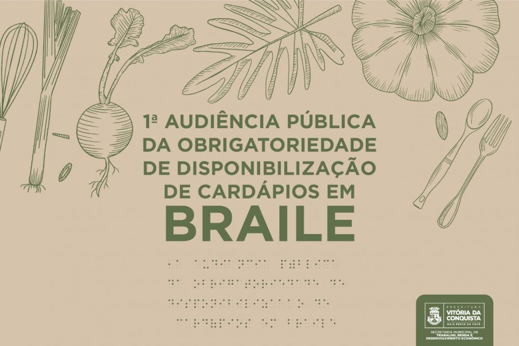 A Prefeitura Municipal de Vitória da Conquista informa que, nesta segunda-feira (30), às 14h, no prédio da Associação Conquistense de Integração do Deficiente (Acide), será realizada a 1ª Audiência Pública sobre a obrigatoriedade da disponibilização dos cardápios em braile, em bares, hotéis, restaurantes e estabelecimentos similares em Vitória da Conquista.