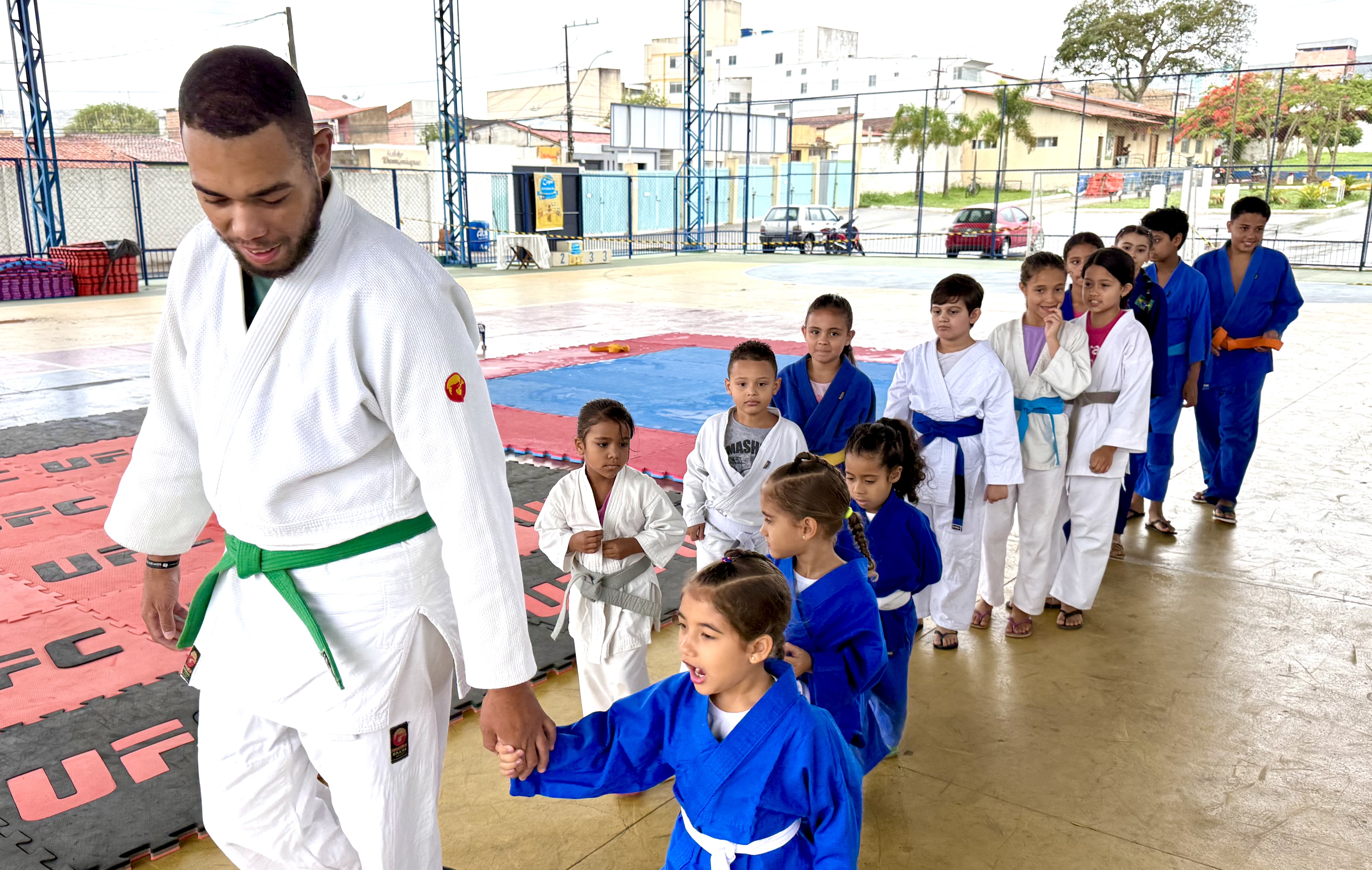 A chuva não impediu que judocas que geralmente estão no Estádio Municipal Edvaldo Flores durante a semana fossem participar da Copa Integração de Judô, no último sábado (22). O evento contou com a participação dos alunos do Projeto Municipal de Esportes, que oferece aulas gratuitas de judô e outras modalidades esportivas para crianças e adolescentes de Vitória da Conquista.