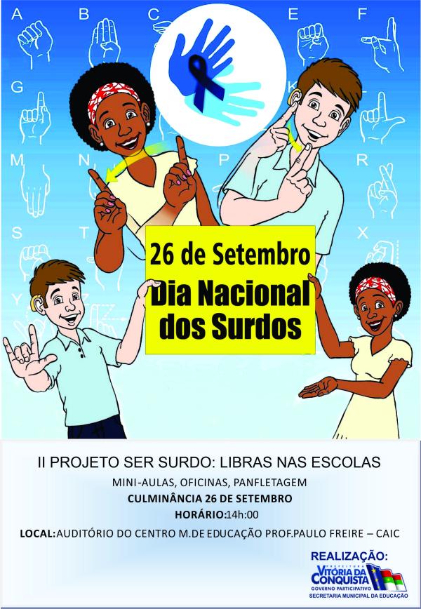 A educação da criança surda é um direito e faz parte da sua condição como ser humano. Tal como para a criança ouvinte, o pleno desenvolvimento das capacidades linguísticas, emocionais e sociais é imprescindível para a criança surda. Por isso, a Prefeitura de Vitória da Conquista, por meio da Secretaria Municipal de Educação, está desenvolvendo o “II Projeto Ser Surdo: Libras nas Escolas”.