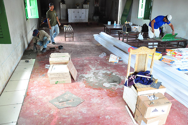 No cemitério da Saudade, além da limpeza, os funcionários também pintavam o muro, mas a maior intervenção está sendo feita na capela do local, que vai receber piso de cerâmica, forro e uma nova pintura.