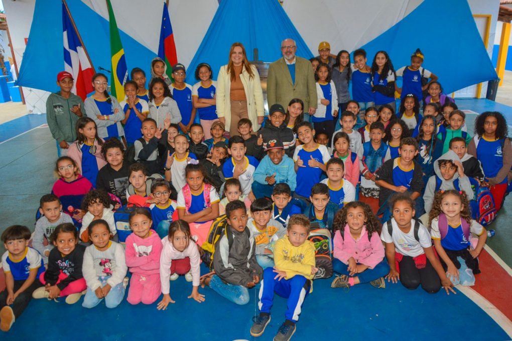 Sheila Lemos e Edgard Larry com alunos da Padre Isidoro