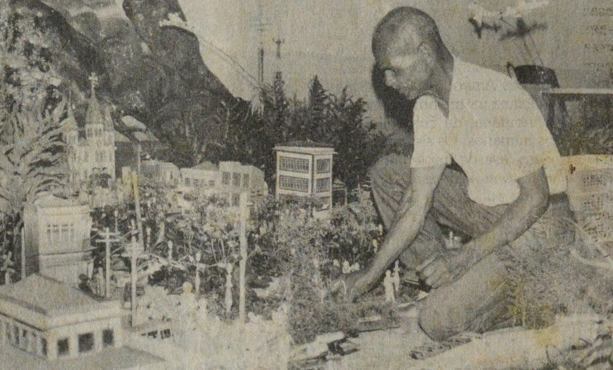 Mestre Geraldino fazendo a montagem do presépio em 1991 (Arquivo da Família/Jornal A Tarde)