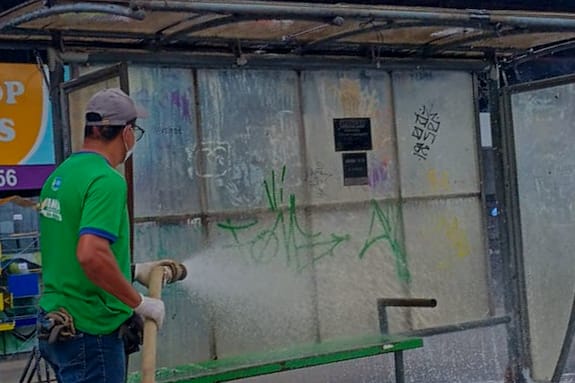 O processo de revitalização envolve várias etapas: remoção de cartazes, lavagem e higienização com produtos específicos, como soda cáustica, além de uma pintura artística.