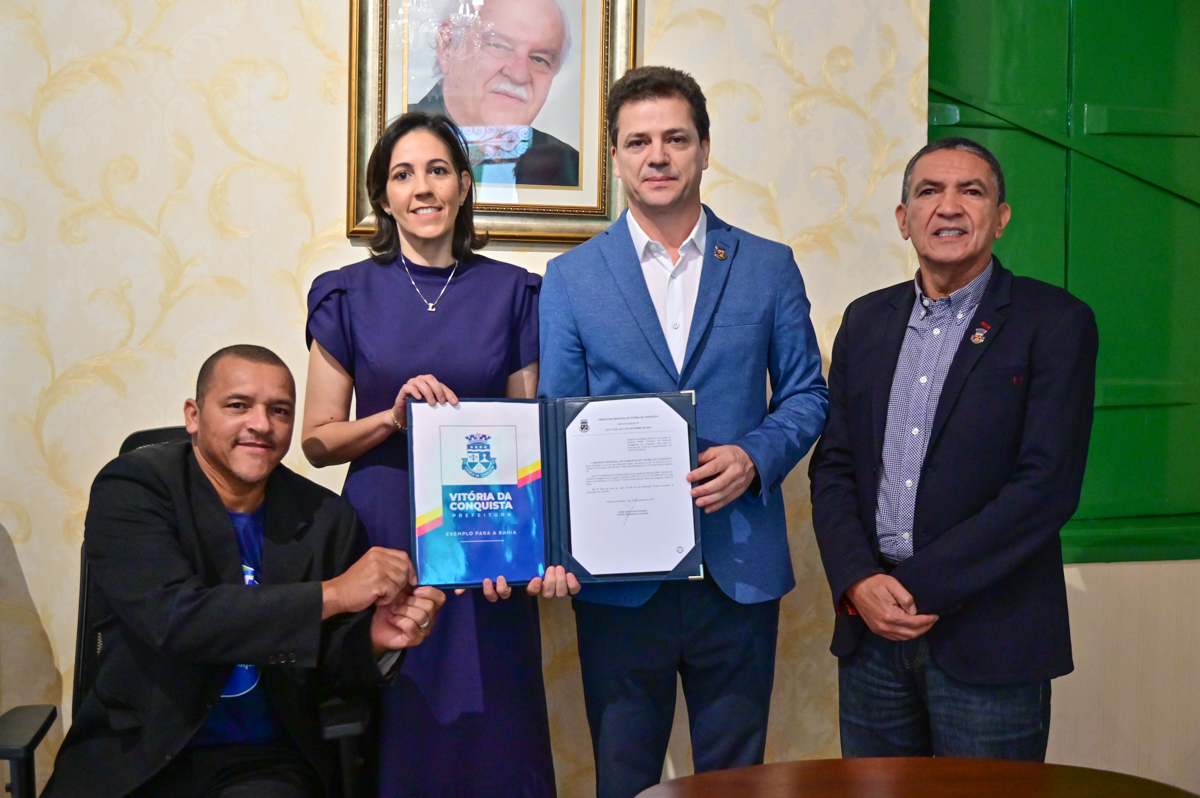 A Lei nº 3.402/2025 que declara a utilidade pública municipal da Associação Encontro de Ministros Evangélicos de Conquista (Emec) foi sancionada pelo prefeito em exercício Aloisio Alan, na manhã desta segunda-feira (22). O ato aconteceu no Memorial Murilo Mármore e contou com a presença da vereadora Lara Fernandes, do secretário da Casa Civil, Coronel Ivanildo da Silva, e de representantes e membros da Emec.