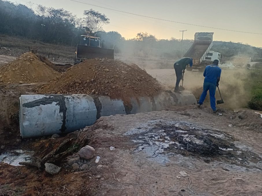 Manilhas que servem para auxiliar no trabalho de drenagem pluvial foram instaladas no corredor que liga os povoados de Quatis dos Fernandes e o Iguá. Segundo o coordenador de Serviços da SMDR, Daniel de Freitas, o trabalho de compactação do solo está quase concluído nesses pontos.