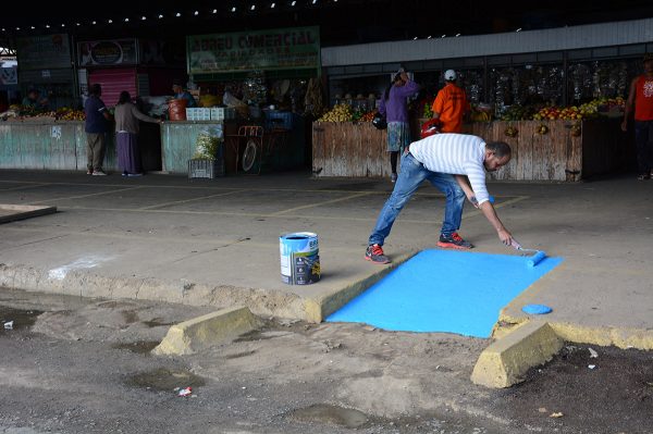 ‘Temos que incluir’ – As rampas estão sendo pintadas com a cor azul e uma ilustração em destaque, que torna evidente a destinação exclusiva a cadeirantes. O serviço faz parte de um conjunto de intervenções que vêm sendo feitas na estrutura das feiras livres do Alto Maron, do bairro Brasil, da Ceasa e do Centro de Comércio Popular, além das proximidades do Mercado de Artesanato e do Teatro Carlos Jehovah.