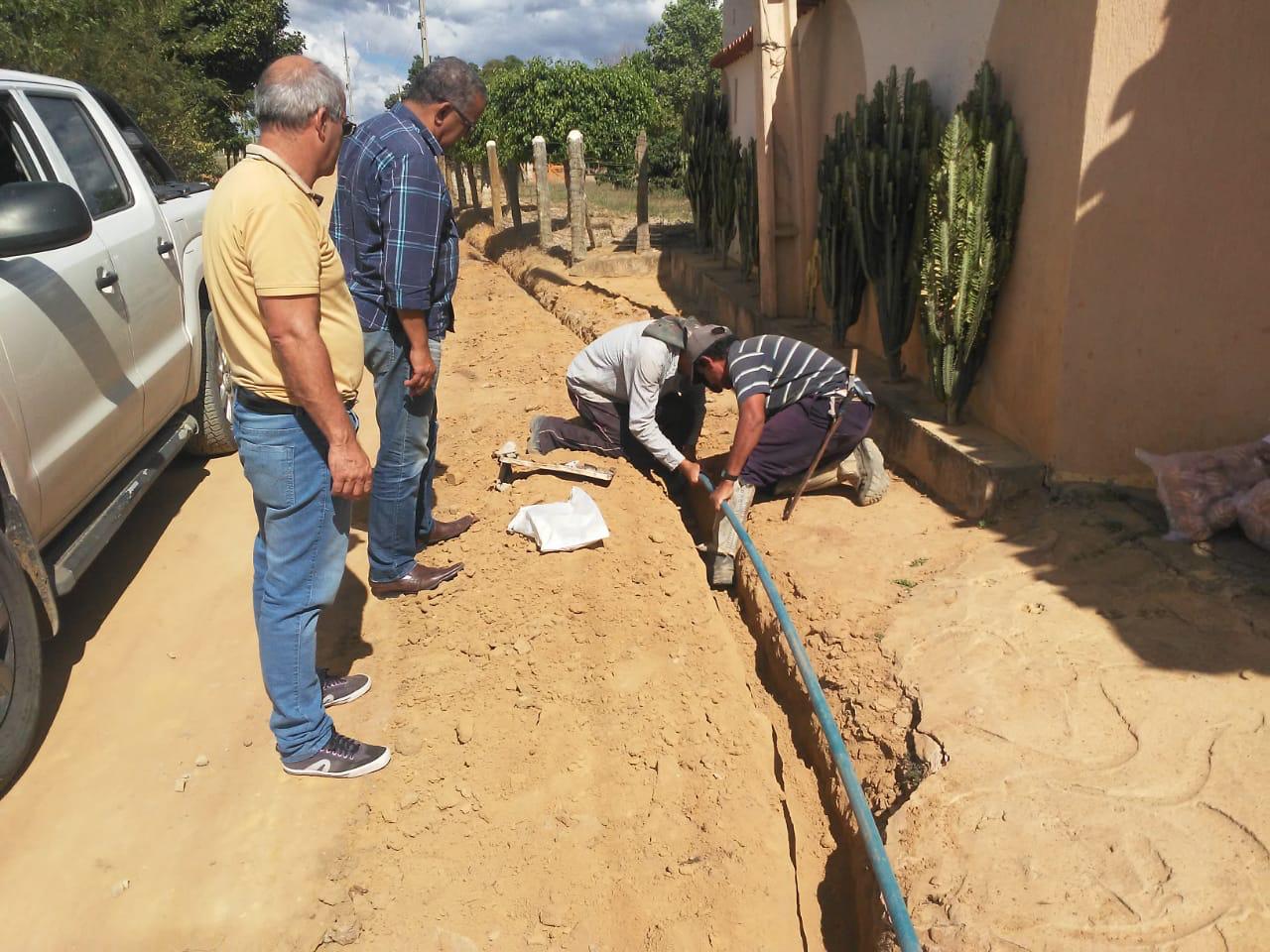 A obra está na fase da distribuição dos canos que vão levar água para as casas