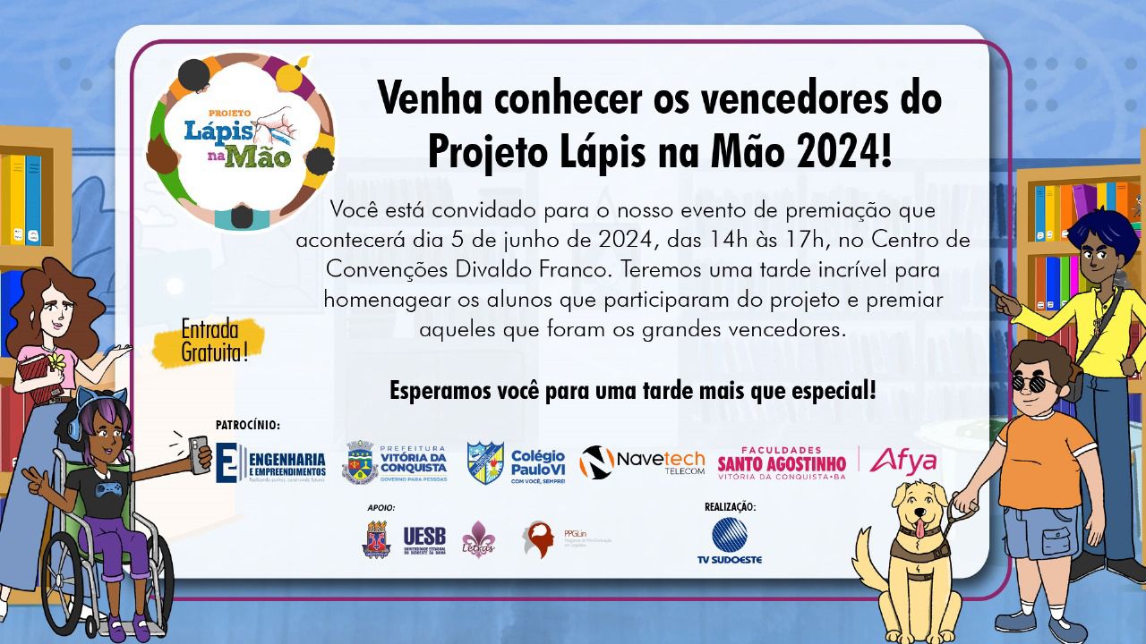 Nesta quarta-feira (5), a partir das 14h, acontece a premiação do Projeto Lápis na Mão, promovido pela TV Sudoeste. A cerimônia será realizada no Centro de Convenções Divaldo Franco, situado na Avenida Rosa Cruz, 1035, bairro Alto Maron.