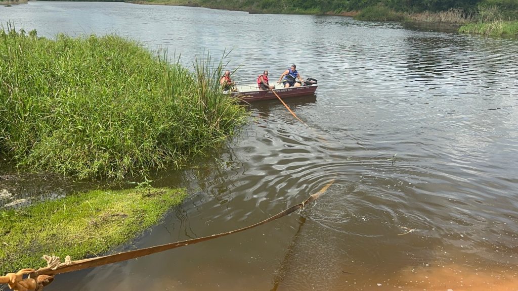 Em torno da vegetação, a profundidade da barragem chega a mais de 10 metros. Apesar da dificuldade, a expectativa é concluir o trabalho ainda nesta quinta-feira. A estimativa é que sejam necessárias 40 viagens de caçamba para descartar todo o material retirado.