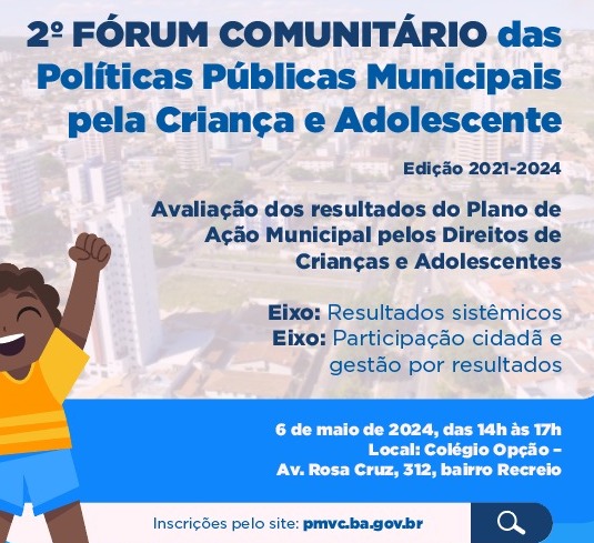 Na próxima segunda-feira (6), a partir das 14h, Vitória da Conquista dará início à realização do 2º Fórum Comunitário do Selo do Fundo das Nações Unidas para a Infância (Unicef). O evento tem como objetivo avaliar, junto com a comunidade, os resultados alcançados pelo município por meio do Plano de Ação Municipal pelos Direitos de Crianças e Adolescentes, elaborado e aprovado no 1º Fórum Comunitário, em fevereiro de 2022.