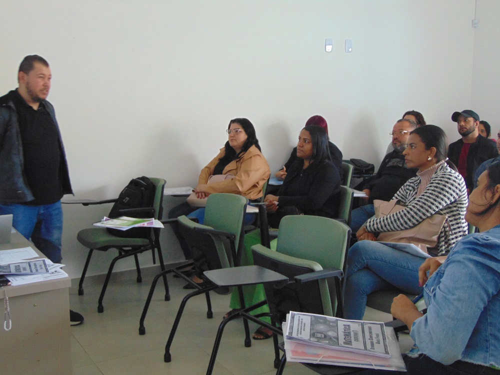 A terceira formação foi com a Consultora do Sebrae, Roseane Nascimento, para os professores da Educação de Jovens e Adultos (EJA). Ela explicou que os professores fazem o curso EAD para aprender a aplicar o projeto. “Eu trago a consultoria para eles. E nós, enquanto Sebrae, trazemos o material para os alunos”.