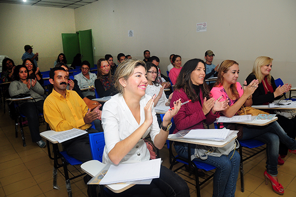 A oficina Música em Movimento começou na manhã desta sexta-feira, 10, no auditório da Secretaria de Trabalho, Renda e Desenvolvimento Econômico, e integra a programação do Festival da Juventude – Ano II. Ela foi destinada aos professores da Rede Municipal de Ensino e ministrada pela musicoterapeuta Adriana Rodrigues Didier.