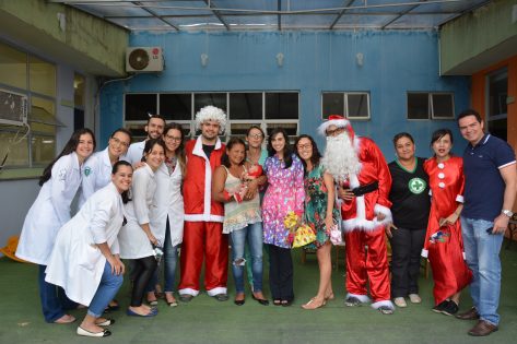 Festividades de Natal marcaram, na tarde desta quinta-feira (20), o setor de pediatria da Fundação de Saúde de Vitória da Conquista – Hospital Esaú Matos. O evento natalino, feito por iniciativa da liga de pediatria do Hospital e alunos residentes do Curso de medicina da Universidade Estadual do Sudoeste da Bahia (Uesb), contou ainda com a participação do Papai Noel que fez a entrega de presentes doados por voluntários.