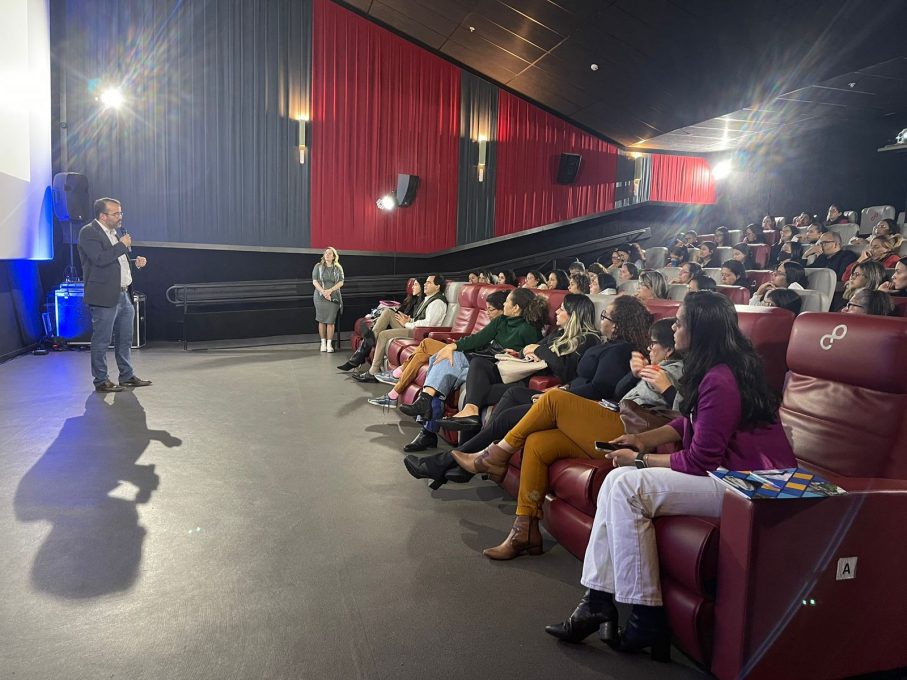 A atividade aconteceu na manhã desta sexta-feira (21), na sala de cinema do Boulevard Shopping, e reuniu dezenas de profissionais que atuam na área da saúde e educação do município, para assistir a palestra da psicóloga do Centro de Atenção Psicossocial Infantojuvenil (Caps ia), Bianca Prates, que falou dos fluxos de atendimentos no serviço e esclareceu as dúvidas dos ouvintes.