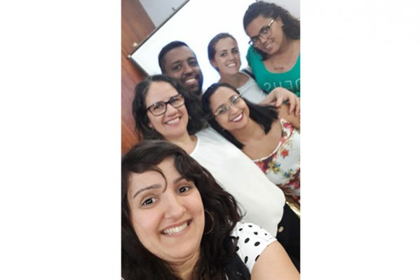 Cinco profissionais do Esaú participaram do curso; na foto, eles posam com a fisioterapeuta da unidade (blusa branca, ao centro)