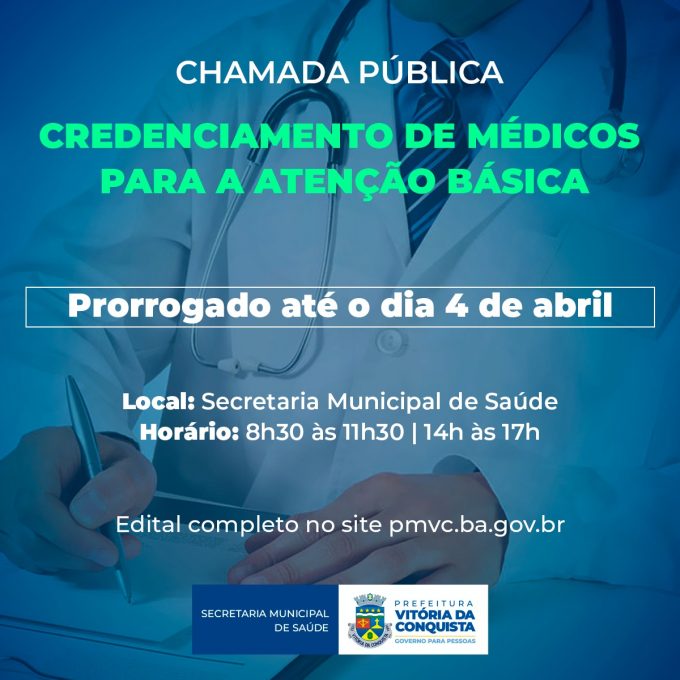 Ainda está aberta, até a próxima segunda-feira (4), o período de credenciamento de médicos na Chamada Pública nº 01/2022, para atuação nas Unidades Básicas de Saúde da zona urbana e rural do município. Até agora, a Secretaria Municipal de Saúde (SMS) já recebeu 25 envelopes de empresas com a documentação necessária para avaliação.