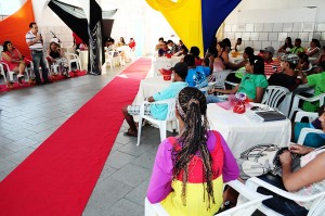 Um desfile de moda marcou o início da cerimônia realizada na tarde desta quarta-feira, 19, na qual 114 educandos do Conquista Criança receberam os certificados de suas participações nas oficinas profissionalizantes oferecidas pelo programa. Detalhe importante: os modelos eram educandos, e as peças vestidas por eles foram confeccionadas por alunos das oficinas de Costura Industrial e Serigrafia.