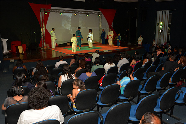 No segundo ambiente, já no auditório, o teatro foi a linguagem escolhida para contar ao público o que os facilitadores fizeram durante o ano de 2016. “Eles mostraram aqui a arte que fazem dentro da escola”, observou a gestora do programa, Núbia Bahia.