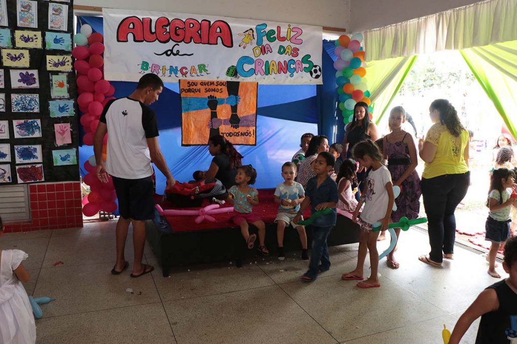O Centro Municipal de Educação Infantil Auxêncio Dias de Oliveira (CMEI), localizado no bairro Lagoa das Flores, em parceria com os voluntários do coletivo Ubuntu, promoveu uma ação em comemoração ao mês das Crianças, neste sábado (21). O projeto “Alegria de Brincar” teve início no último dia 3 de outubro e culminou em um dia repleto de diversão e alegria para os pequenos alunos da creche.