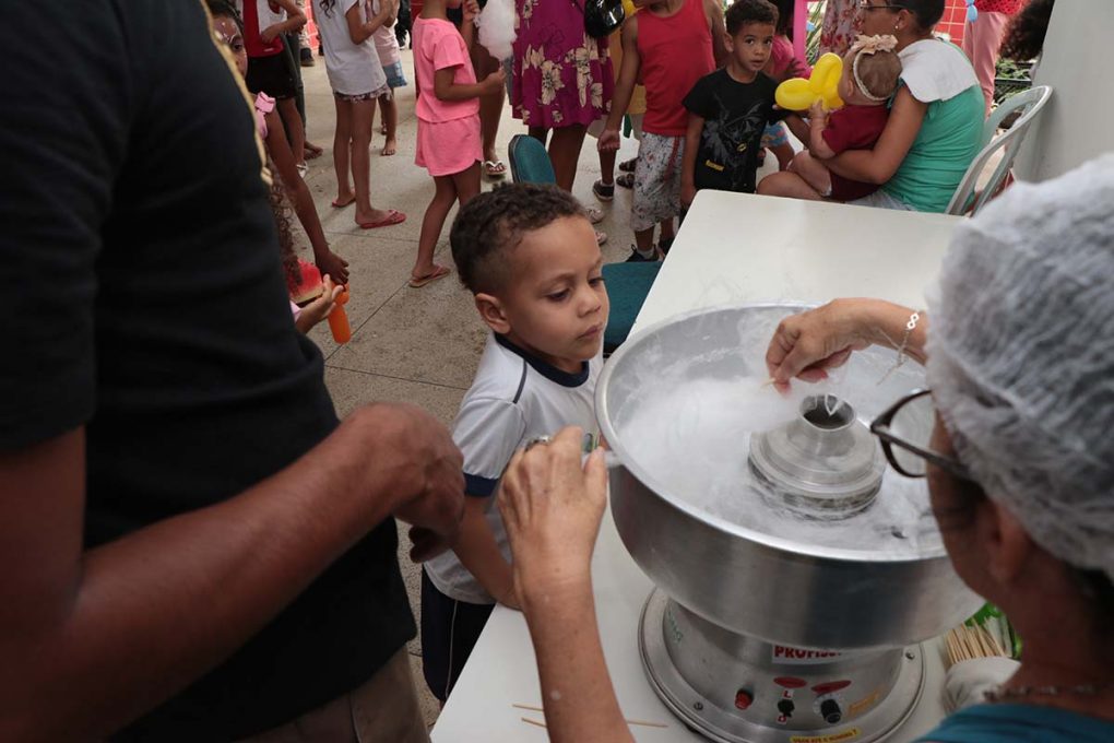 Durante o evento, as crianças puderam desfrutar de diversos jogos e brincadeiras, além de se divertirem nos brinquedos disponíveis. A pintura facial fez sucesso entre os participantes, que também saborearam pipoca e algodão doce e outras guloseimas que são indispensáveis em qualquer festa infantil. Aluna do CMEI, Lorena Silva, de 5 anos, é uma das mais entusiasmadas com a festa. Ela relata que o dia de diversão com os colegas e professores foi um dos melhores que já participou.
