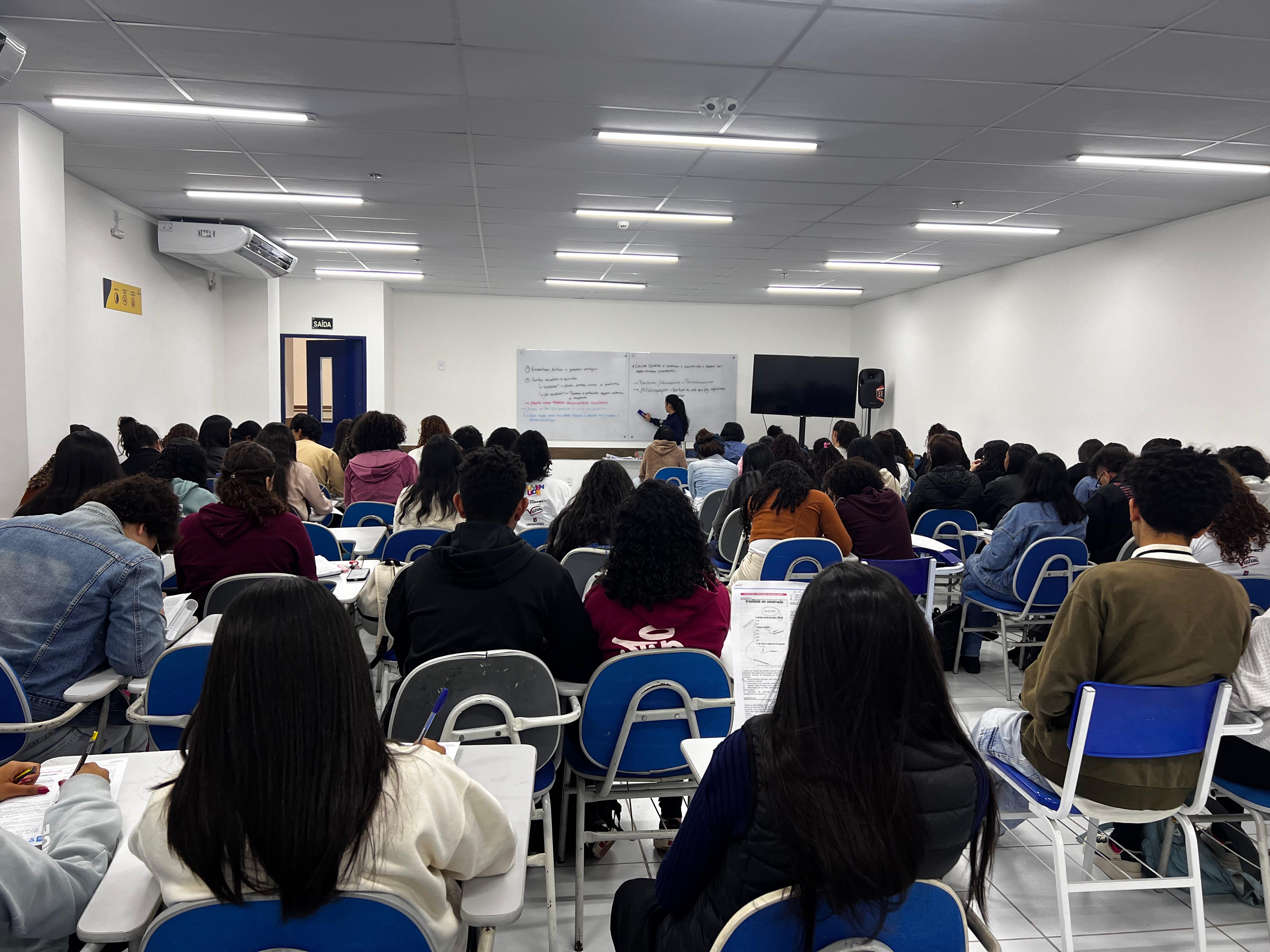 Com aulas que acontecem todos os sábados, no período da manhã e da tarde, o projeto é focado nas disciplinas exigidas no Enem: Linguagens, Matemática, Ciências da Natureza, Ciências Humanas e Redação. Para a professora de Linguagens, Nathalia Badim, o estudo ativo e a estratégia de tempo são técnicas essenciais para o exame. “Nessa reta final, o estudo de questões é o mais indicado, porque o aluno vai conseguir perceber as lacunas e traçar métodos para conseguir fazer uma boa prova”.