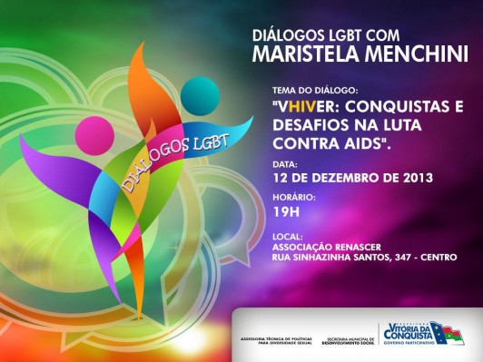 O Diálogos LGBT é uma iniciativa que traz, a cada mês, uma roda de conversa sobre temas pertinentes à promoção da cidadania e dos direitos humanos da população de lésbicas, gays, bissexuais, travestis e transexuais de Vitória da Conquista.