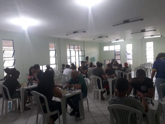 Alunos e instrutores do Projeto Educarte, estudantes de escolas municipais e do Programa AABB Comunidade, além de enxadristas de outros grupos de Vitória da Conquista, participaram, neste sábado (11), do I Torneio Aberto de Xadrez do Projeto Educarte. Cerca de 50 pessoas estiveram presentes no evento, realizado no Centro de Formação Lions.