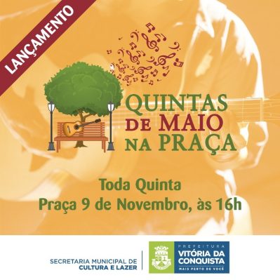 Será lançado nesta quinta-feira, 18, a 12ª edição do projeto musical ‘Quintas de Maio’. O evento cultural promete levar música boa para as principais praças de Vitória da Conquista. Todas as quintas, a partir das 16h, o público vai poder conferir shows musicais com artistas locais e regionais.