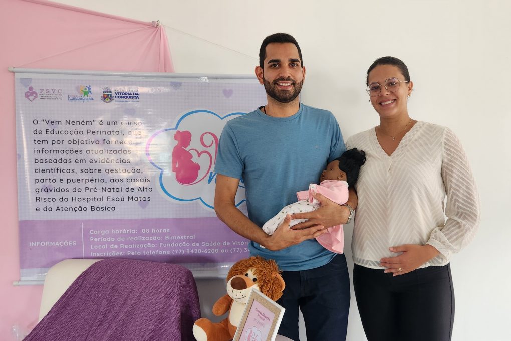 O último sábado (26) foi de aprendizagem, esclarecimentos de dúvidas e trocas de experiências no auditório do Hospital Municipal Esaú Matos, em Vitória da Conquista. Foi quando aconteceu mais uma edição do curso de Educação Perinatal “Vem Neném”, que auxilia famílias que estão à espera do nascimento dos seus filhos. Desta vez, o curso contou com recorde de participantes: ao todo, foram 60 inscritos.