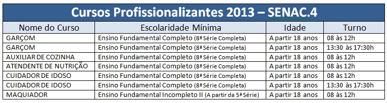 Veja abaixo os cursos oferecidos, a idade e a escolaridade mínimas: