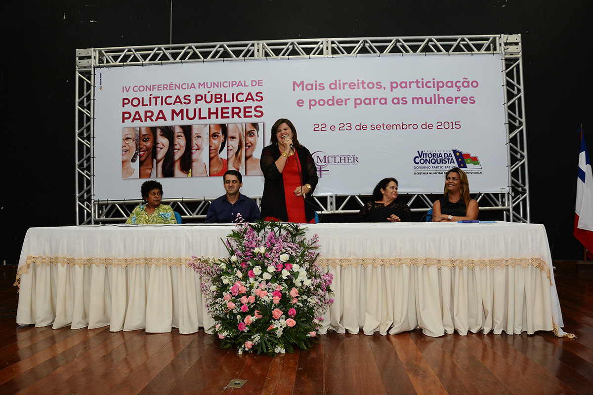 Em sua fala de abertura, a secretária municipal de Desenvolvimento Social, Kátia Freitas, representando o prefeito Guilherme Menezes na ocasião, destacou alguns avanços nas políticas públicas para mulheres em Vitória da Conquista, a exemplo da implantação do Centro de Referência da Mulher Albertina Vasconcelos e da coordenação municipal de Políticas Públicas para as Mulheres. A presidente do Conselho Municipal da Mulher, Maria Helena Ferraz, agradeceu a Prefeitura Municipal pelo apoio e empenho. “Esse auditório lotado mostra que a causa das mulheres é vista com bastante importância aqui em Vitória da Conquista”, disse aos presentes.