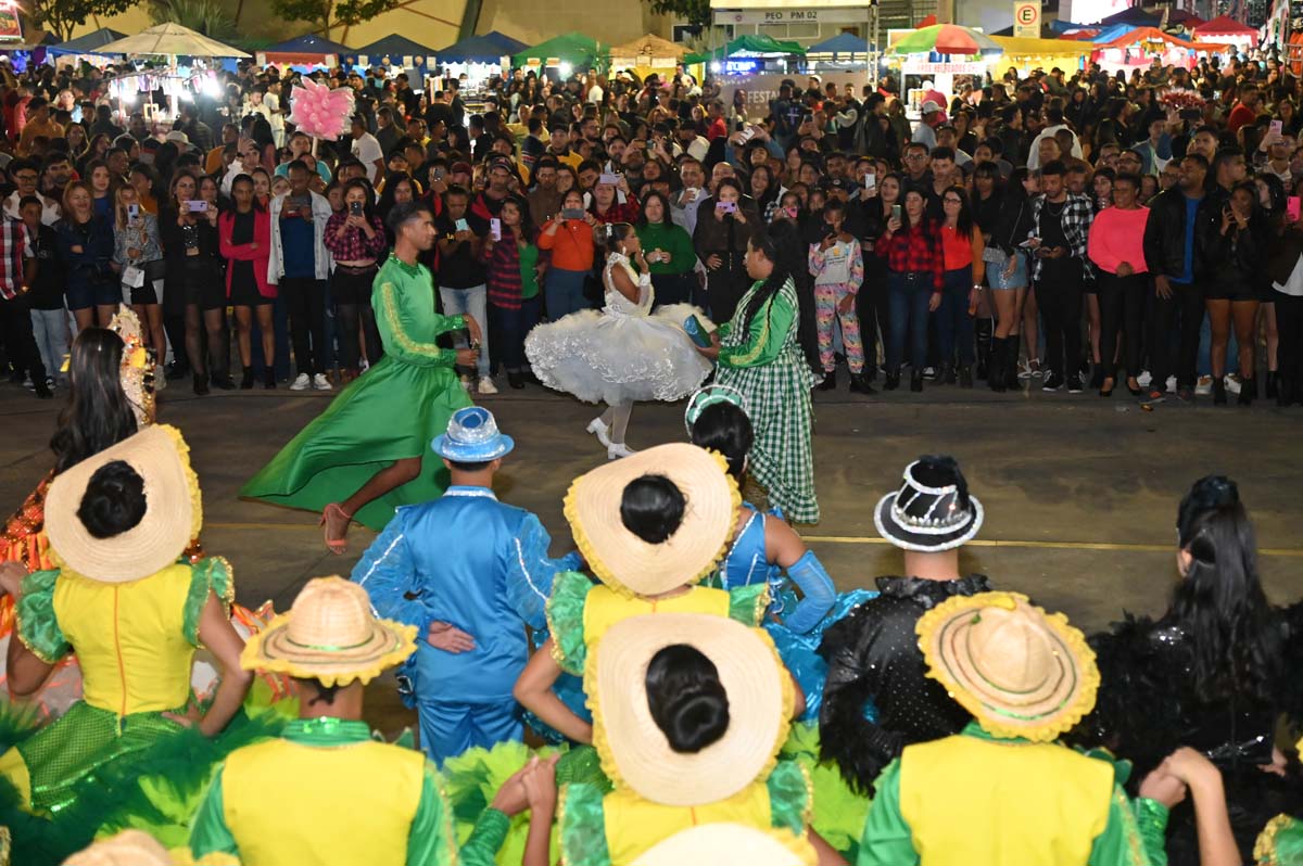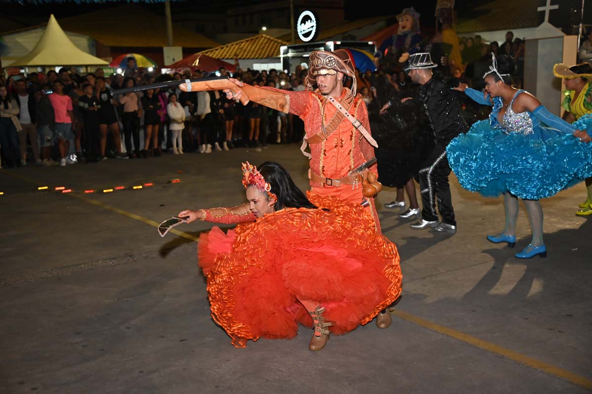 A história começa com a rivalidade entre duas famílias que disputam a posse de um milharal, mas, no final, o amor vence e a alegria é celebrada. Assim terminou o espetáculo da Quadrilha Luz do Nordeste, que se apresentou nesta terceira noite do Arraiá da Conquista, no Centro Cultural Glauber Rocha.