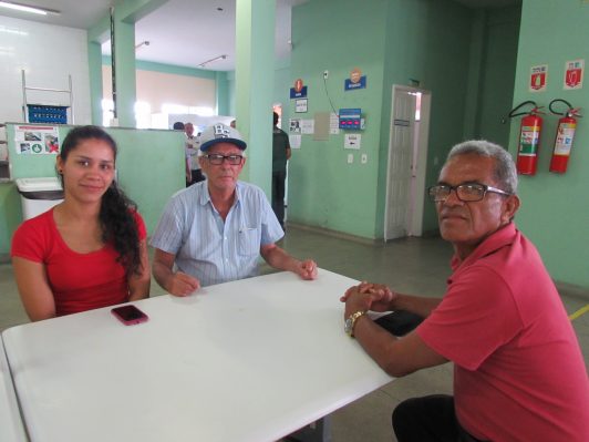 De segunda a sexta-feira, os amigos Rosânia Barbosa, 28, Antônio Valter de Souza, 70, e Orlando Fernandes, 61, se encontram durante o almoço no Restaurante Popular, rotina que acontece desde a abertura do serviço pela Prefeitura de Vitória da Conquista em 2014. “Sou aposentado e moro com meu filho e não faço comida em casa, então, o Restaurante é a melhor opção para minha refeição. Gosto do atendimento”, comentou Valter.