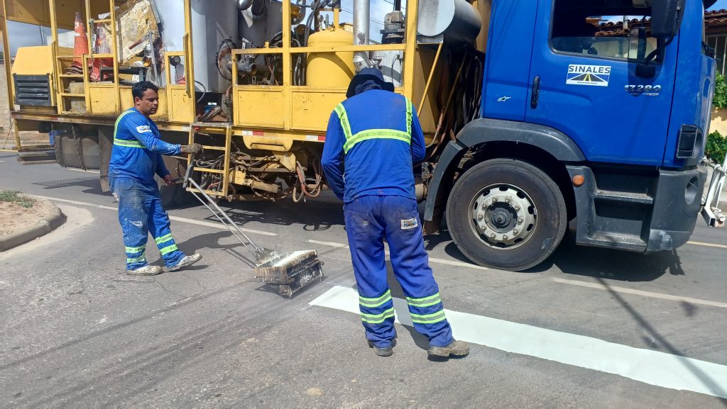 A Prefeitura de Vitória da Conquista já iniciou a sinalização horizontal em diversas vias do loteamento Panorama após a obra de pavimentação asfáltica. A marcação é feita com tinta termoplástica reflexiva, cujo revestimento tem efeito refletivo à noite e é altamente resistente ao desgaste, conforme informou o engenheiro Jefferson Chaves.
