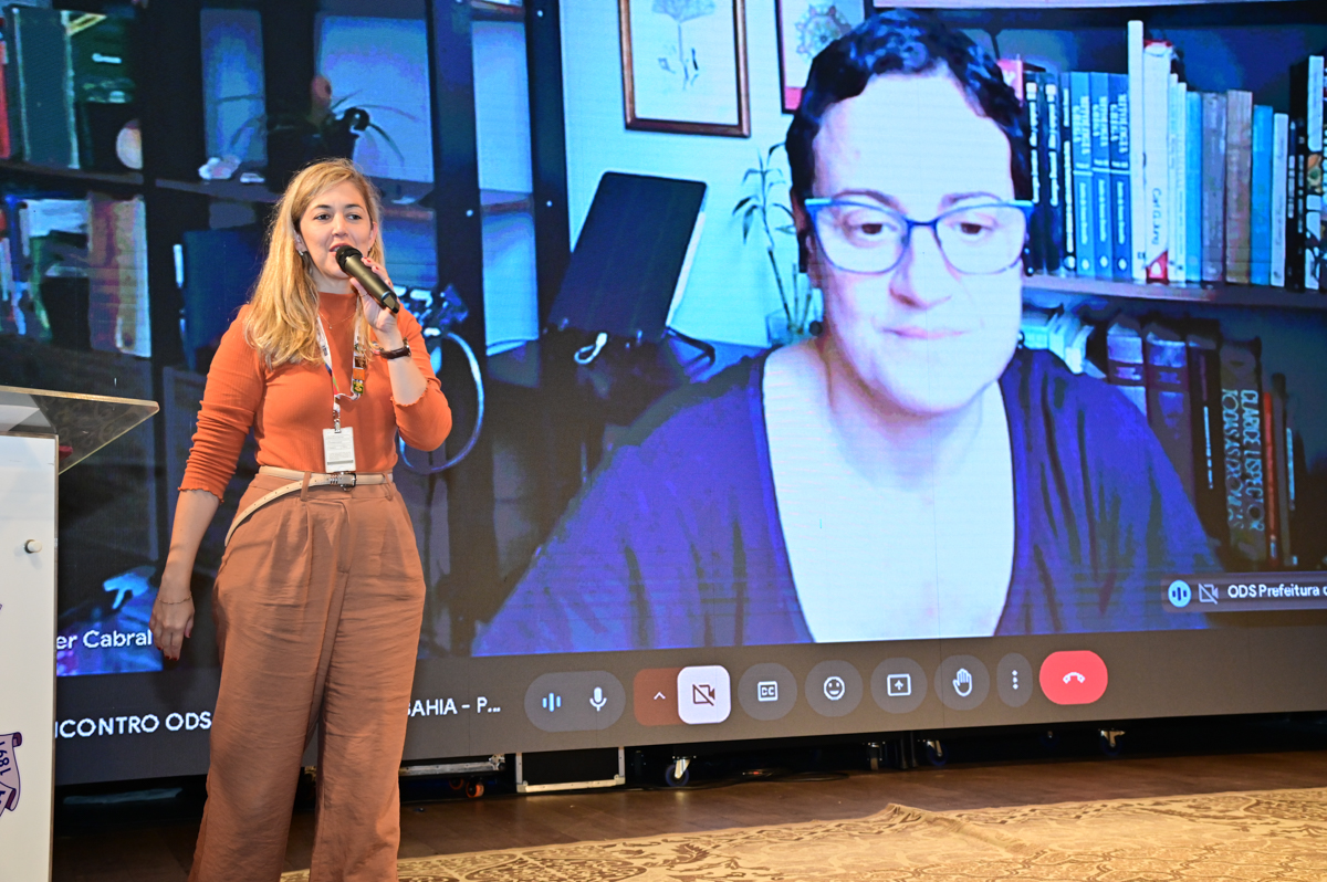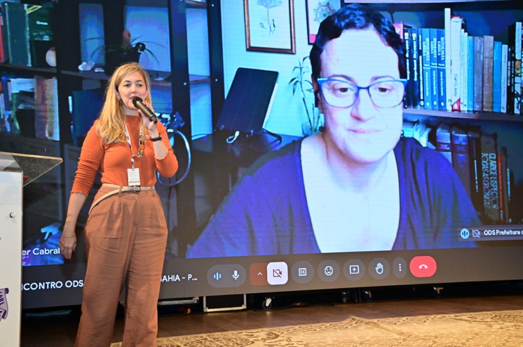 Segundo ela, quase 67% das metas globais são de responsabilidade dos governos locais e subnacionais. “Então, o Município tem uma importância muito grande, principalmente essa que é a última gestão antes de 2030, que é o prazo da agenda. Os governos locais têm a capacidade de gerar essas transformações necessárias no território: reduzir as desigualdades, enfrentar as mudanças climáticas. Antes, a colega Clarice Cabral, de forma online, falou sobre os indicadores, detalhando os indicadores e a importância deles para a Agenda 2030.