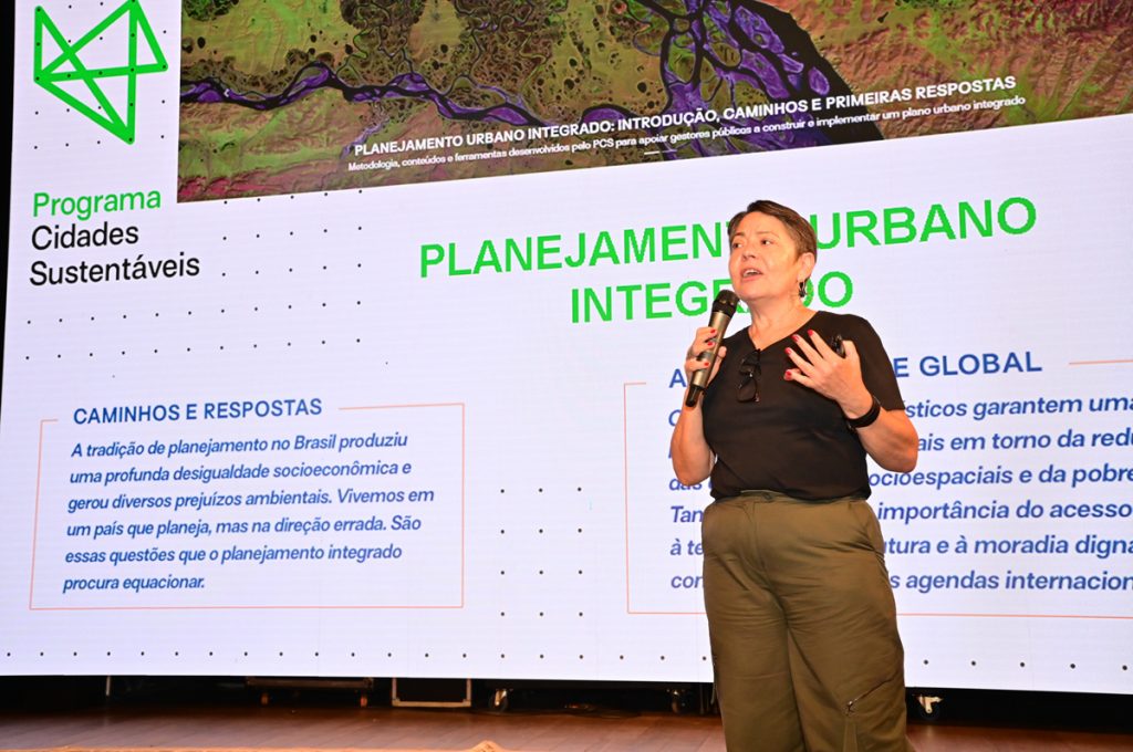 A coordenadora do Programa Cidades Sustentáveis, Zuleica Goulart, aprofundou a respeito da importância do desenvolvimento sustentável para as cidades, considerando a dimensão social, econômica, ambiental e a parte de governança, na primeira oficina, e sobre o processo de localização, ou seja, como você alinha suas políticas e seus programas, durante a última oficina do evento. “Eu fiz um recorte do nosso índice de desenvolvimento sustentável das cidades para as pessoas entenderem, porque há desafios em todas as regiões do país. Porém, é evidente que nós temos um país extremamente desigual. Mas eu acho que é uma soma de esforço coletivo, a gente consegue avançar com uma agenda para melhorar a qualidade de vida das pessoas”, disse Zuleica.