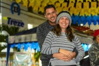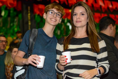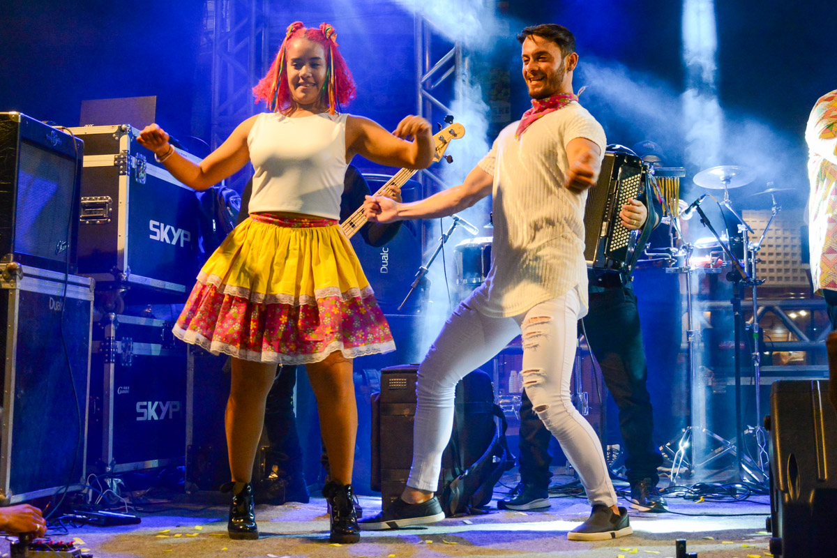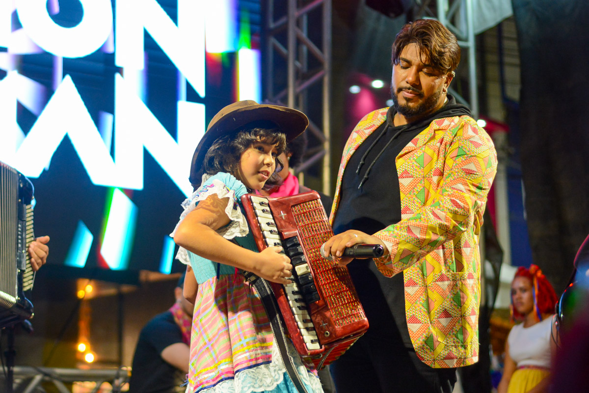 Mas antes dele, que já é um veterano no Arraiá, subiu ao palco o cantor e compositor Ramon Roman, que, apesar da expressiva trajetória musical, se apresentou na festa pela primeira vez. Com um show alegre e irreverente, acompanhado por dançarinos, Ramon também agradou quem esteve na praça, a exemplo da advogada Vanessa David e da estudante Giulia David. Elas saíram de casa para tomar um quentão e foram contagiadas com a música e interação do artista com o público.