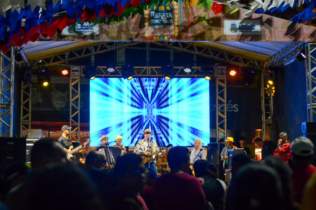 A segunda semana do Arraiá da Conquista na praça Nove de Novembro terminou nesta quinta-feira (22) com uma celebração a cultura nordestina e aos santos juninos no show “De São João a São Pedro” apresentado por Seu Baducha e banda.