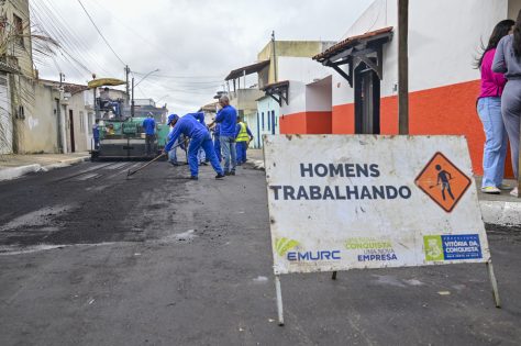 Ao todo, sete ruas da parte alta do bairro serão contempladas pelo recapeamento, que faz parte do programa Acelera Conquista. Em quatro delas, o serviço já foi concluído. “Estamos com o trabalho a todo vapor. Demos a ordem de serviço dia 7 e, hoje, caminhamos para a finalização”, afirmou a prefeita Sheila Lemos, ao vistoriar o andamento das obras neste sábado (11).