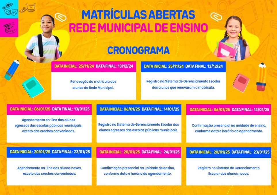 Confira o calendário divulgado pela Smed no último dia 14, através da Portaria nº 100/2024.