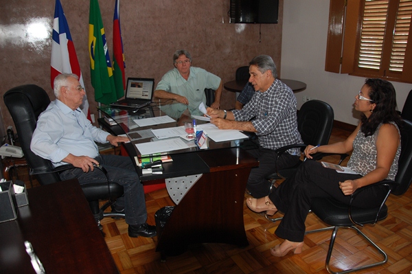 Nessa terça-feira, 2, representantes do Governo Municipal de Vitória da Conquista estiveram reunidos, no Gabinete Civil, com o presidente do Sindicato do Comércio Varejista e Atacadista, João Luís de Jesus, com o intuito de fortalecer parcerias e discutir sobre o andamento de ações, programas e projetos desenvolvidos pelo Serviço Social do Comércio (Sesc) e pelo Serviço Nacional de Aprendizagem Comercial (Senac) e que contribuem para o dinamismo da cidade, a exemplo da oferta de cursos para os jovens. O diálogo contou com a participação do prefeito Guilherme Menezes, do chefe do Gabinete Civil, Márcio Higino Melo e da secretária municipal de Infraestrutura Urbana, Debora Rocha.