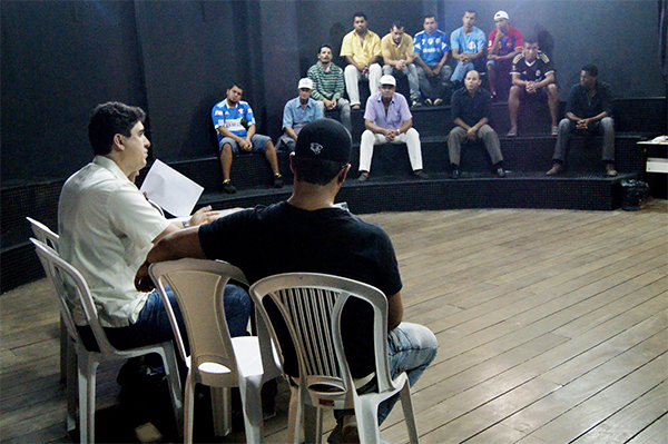 A Coordenação Municipal de Esporte e Lazer realizou nessa quarta-feira, 10, no Teatro Municipal Carlos Jeovah, a primeira reunião do ano com as equipes interessadas em participar do 16º Campeonato de Futebol da Zona Rural de Vitória da Conquista. Cerca de 20 representantes estiveram reunidos com o coordenador municipal de Esporte, Juarez Júnior, o gerente de Esportes, Danilo Rodrigues e o organizador da competição, Reinaldo Freitas.