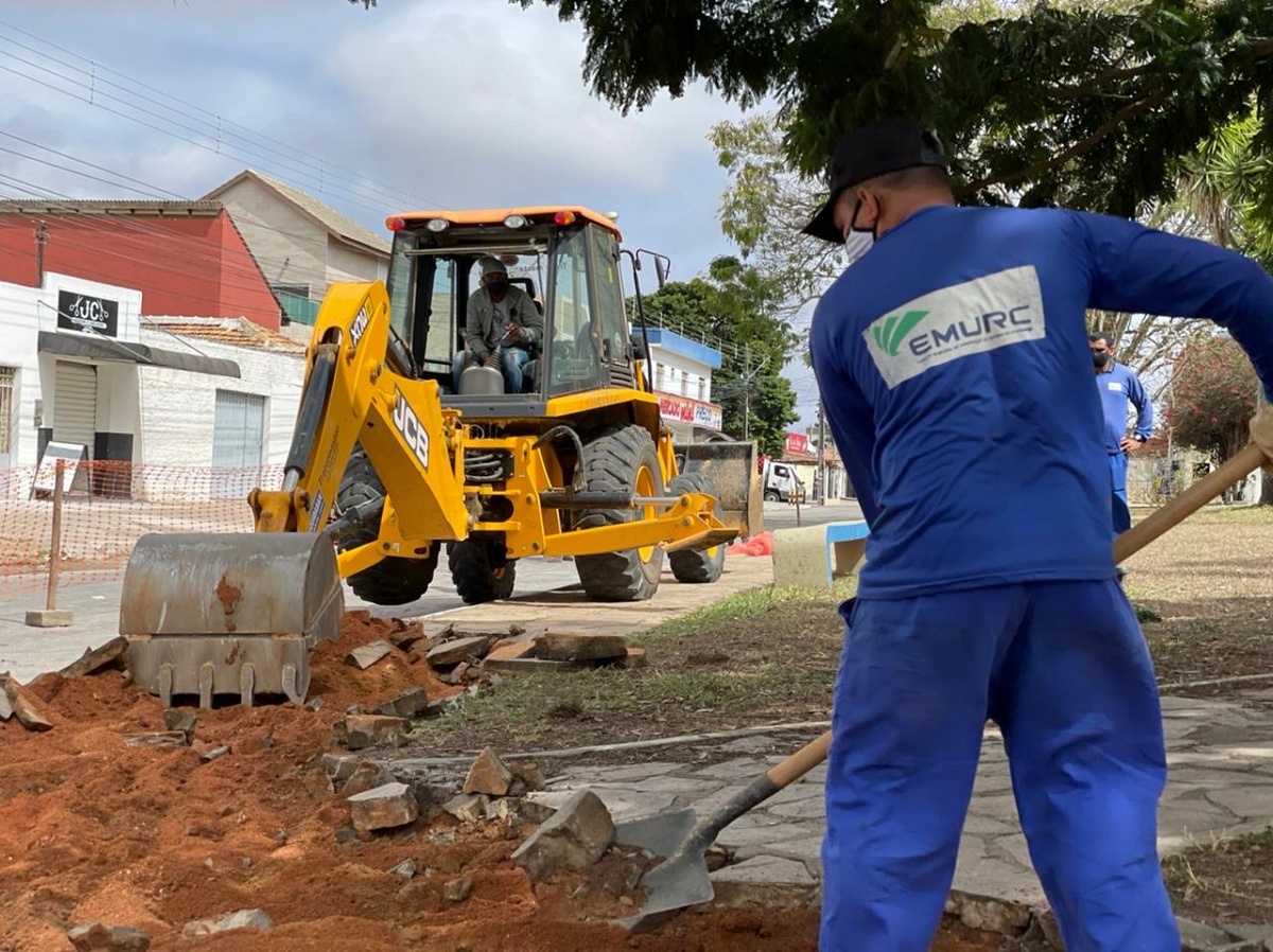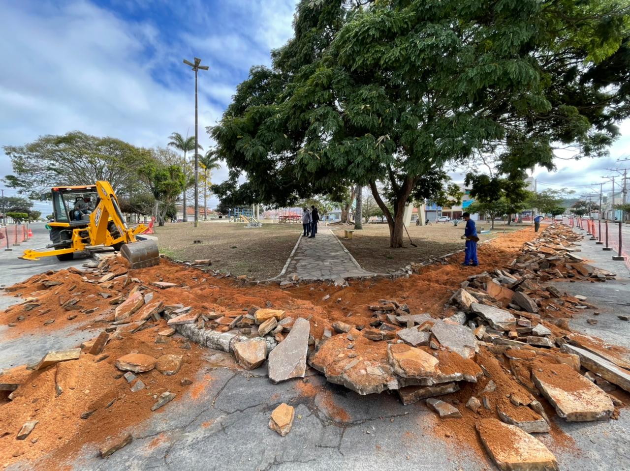 A obra de revitalização da Praça Mármore Neto, conhecida como Praça do Boneco, no Bairro Brasil, começou nesta segunda-feira (9), com a demolição do passeio de pedra no entorno da praça, que dará lugar a um passeio em concreto com rampas de acessibilidade e piso tátil. A Ordem de Serviço foi dada pela prefeita Sheila Lemos na sexta-feira (6). O serviço está sendo feito pela Empresa Municipal de Urbanização (Emurc), sob a responsabilidade da Secretaria de Infraestrutura Urbana (Seinfra).